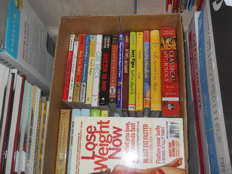 O.K, I'll admit it, this is my adiction, books. I spent almost a decade without picking up a book that didn't involve English as a second language, construction documents or construction management. Now that I have more leasure time, I'm back to reading for the pleasure of it. Luckily, I buy all of my books used so I'm not broke yet! Below are some picutres I took of the boxes where I store my books for lack of proper bookshelves. I took the pictures to guide myself to where each one is. It's not accurate but at least the sight of certain covers will spark my memory about the location of certain tittle. Good luck with that approach, right? Learn the Dewey system, I can almost hear someone say.