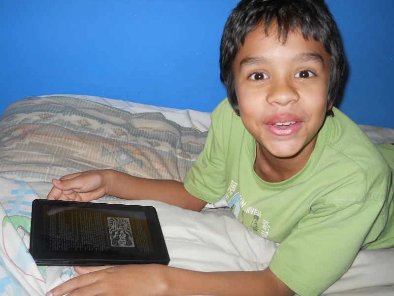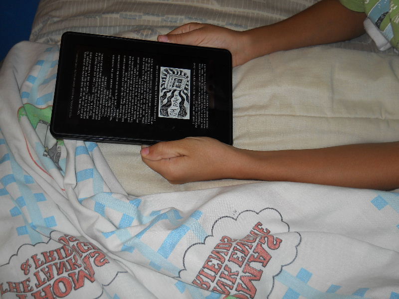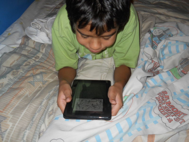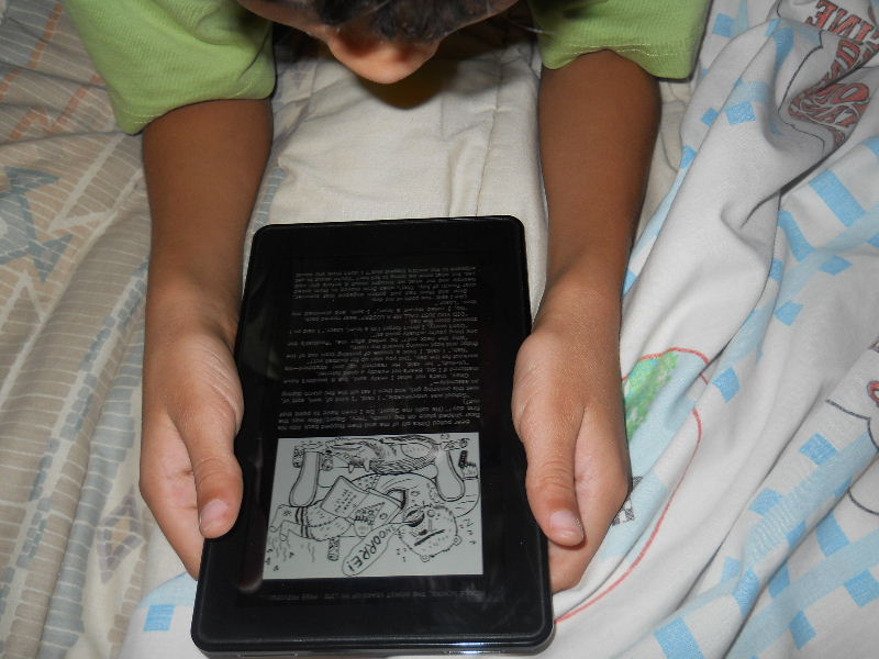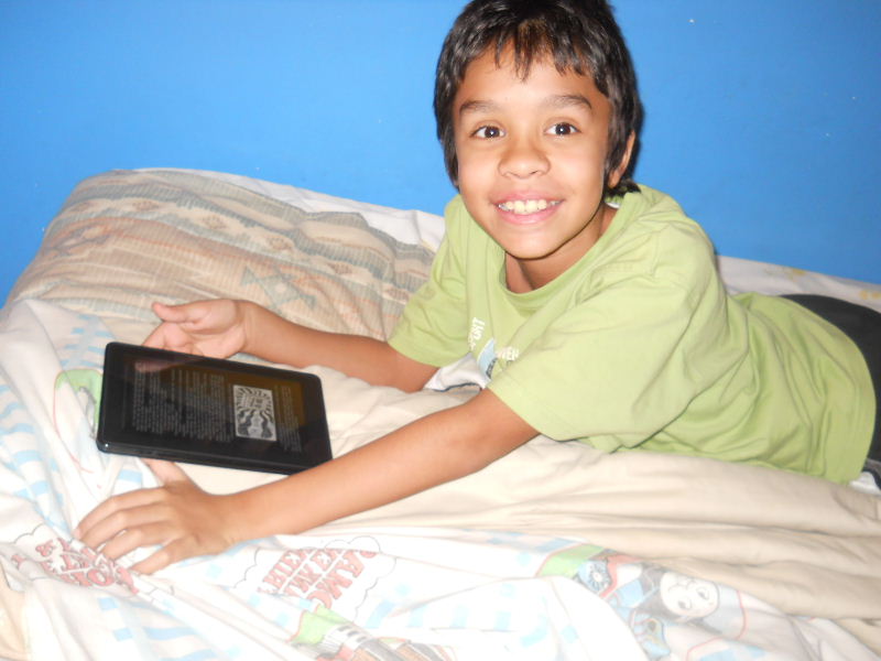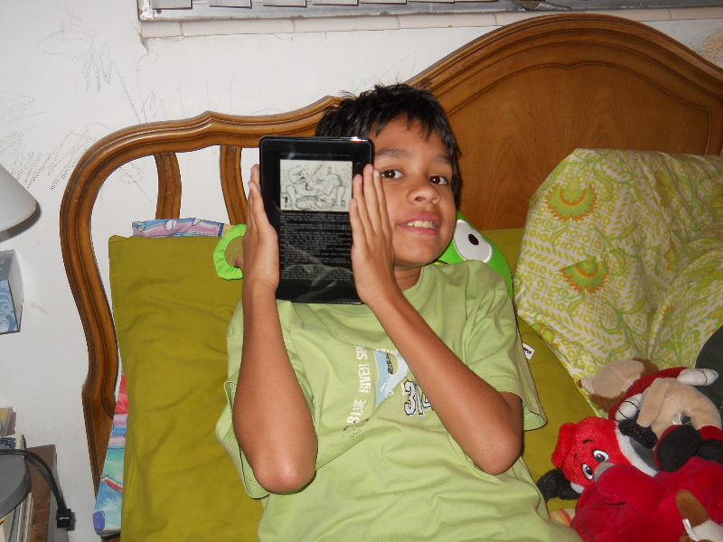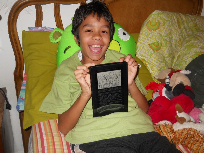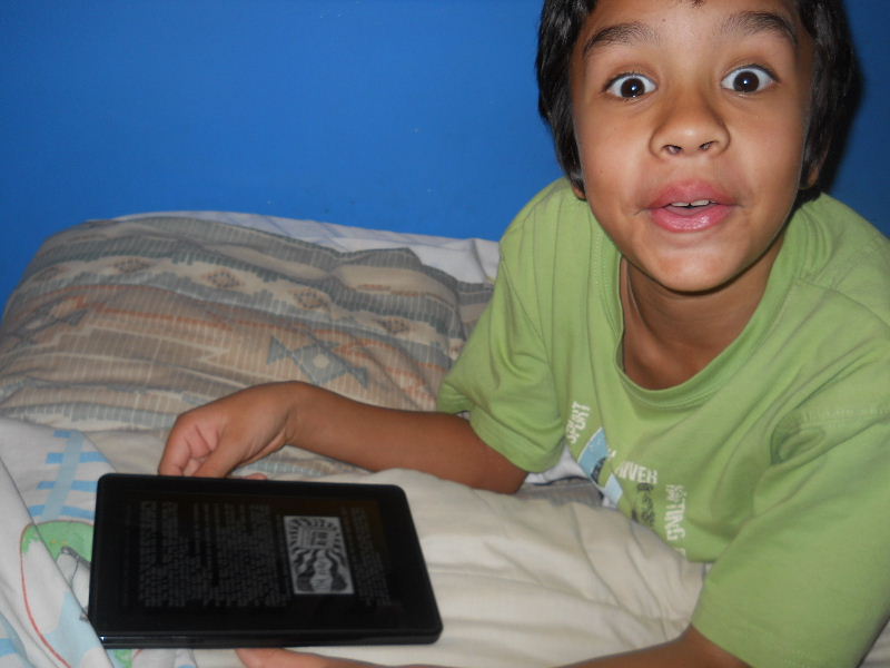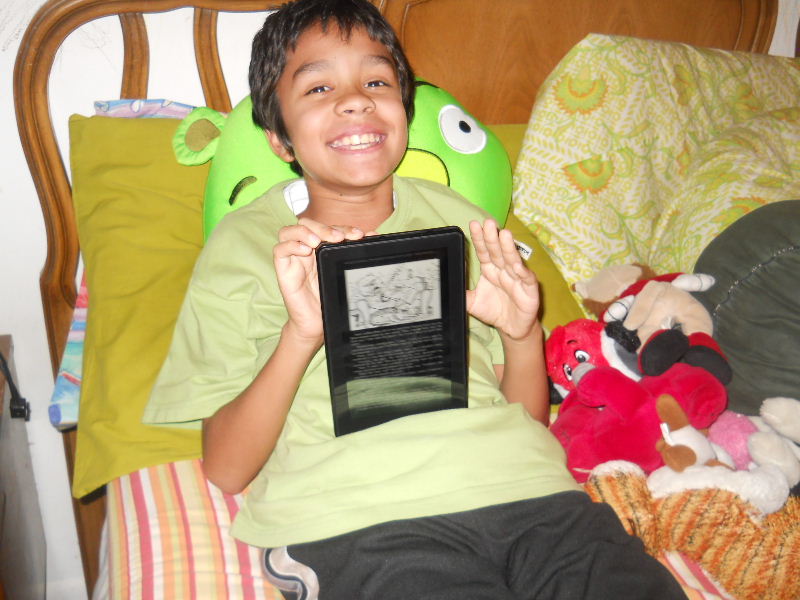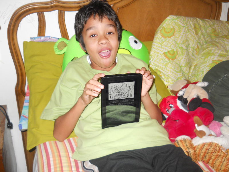 Check out the photos below, Nicolas reading his first kindle book, Middle School, The Worst Years of My Life by James Patterson. The story must be pretty good because he kept coming to me laughing to show me a funny part in a paragraph.