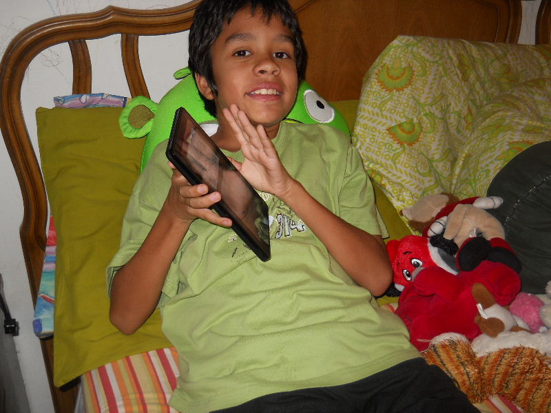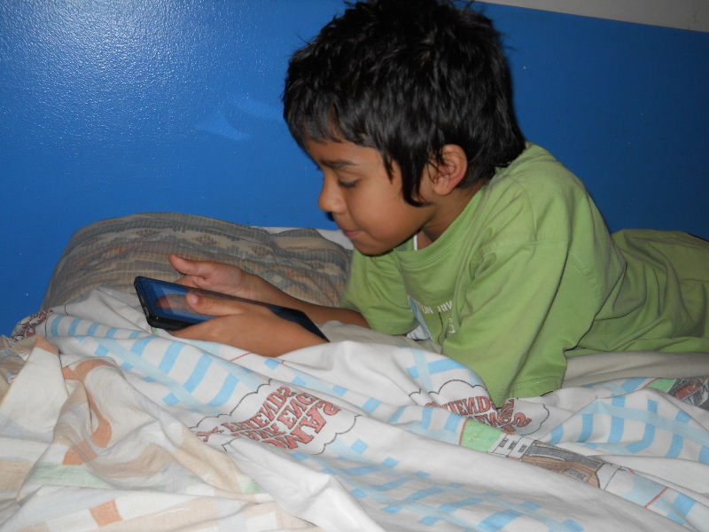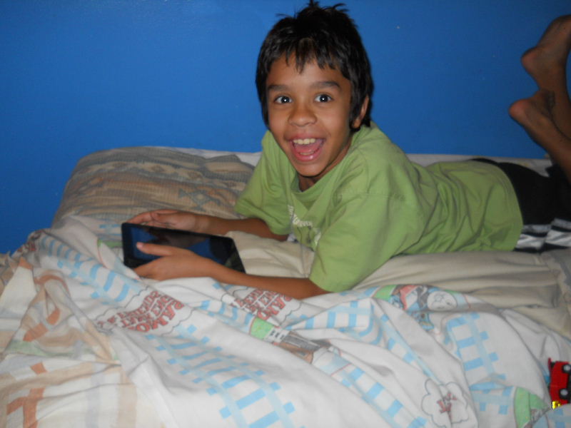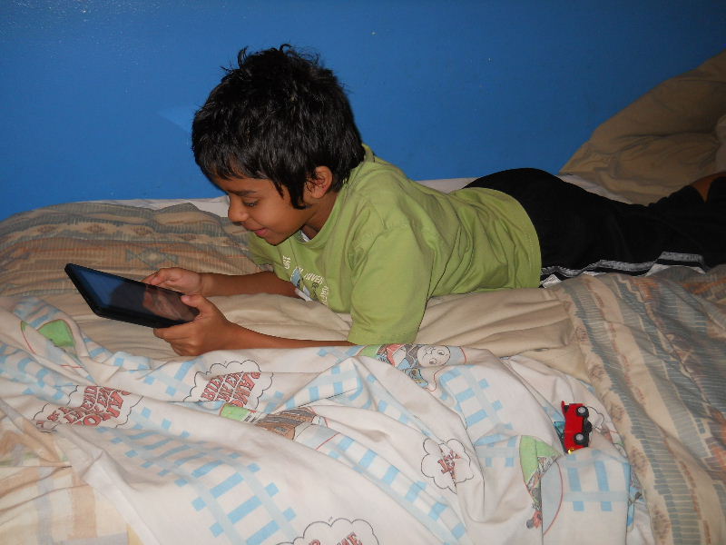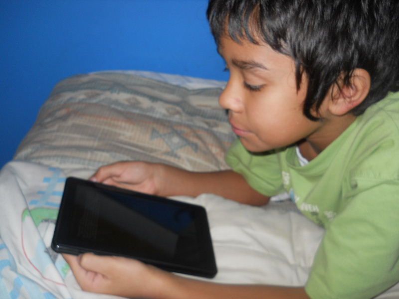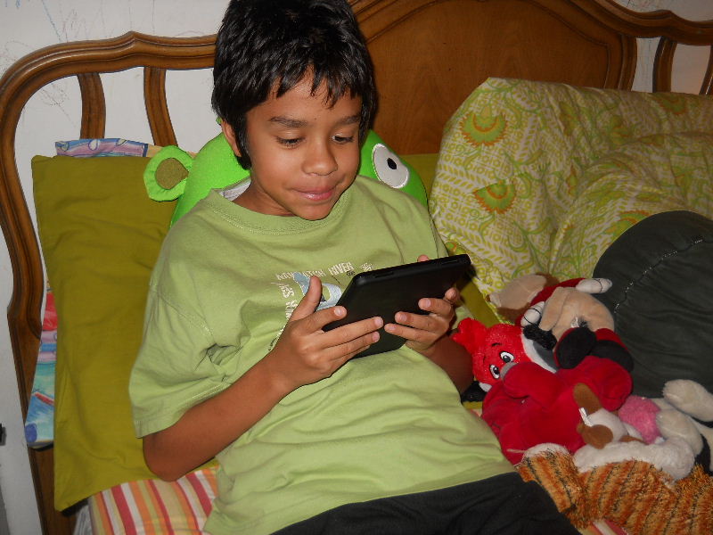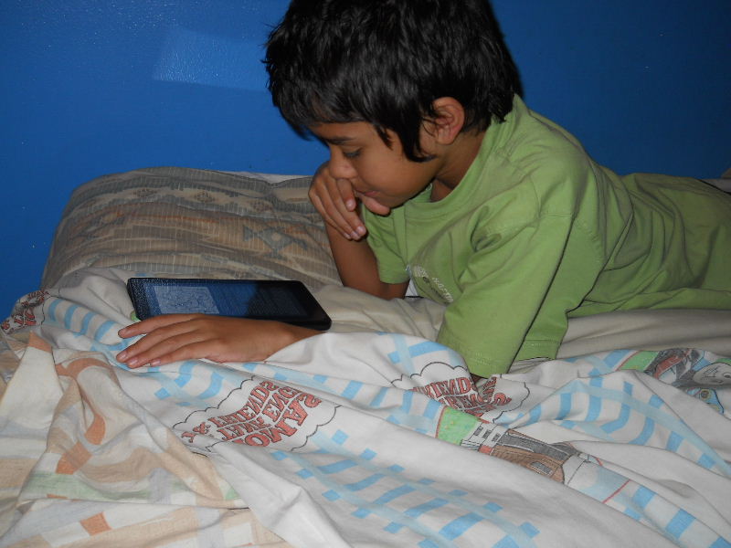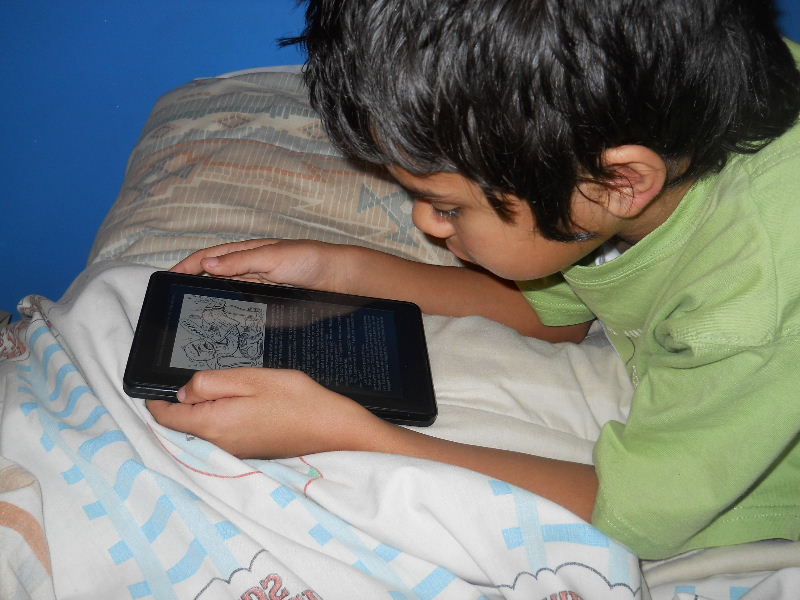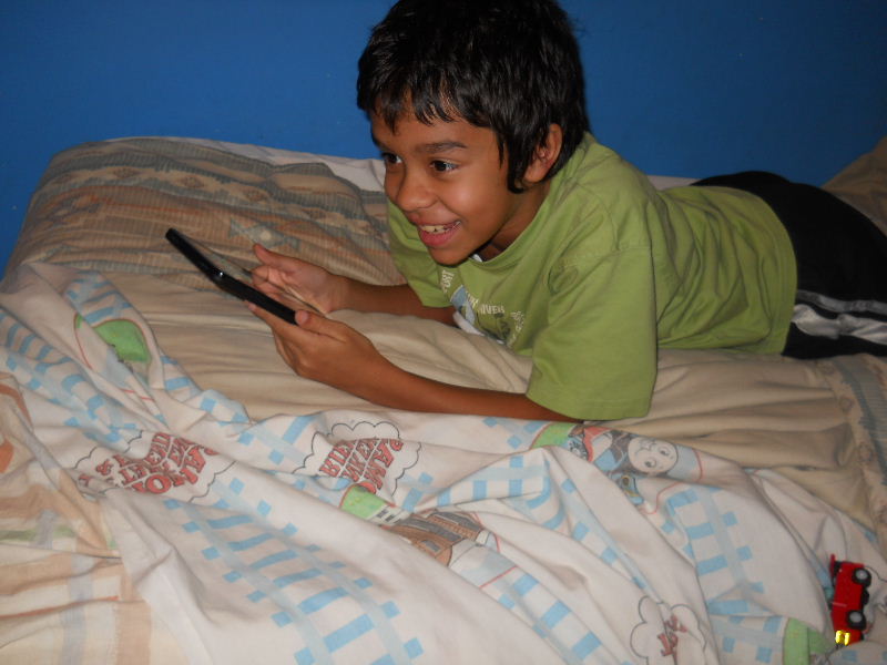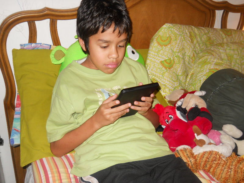 Check out the photos below, Nicolas reading his first kindle book, Middle School, The Worst Years of My Life by James Patterson. The story must be pretty good because he kept coming to me laughing to show me a funny part in a paragraph.
