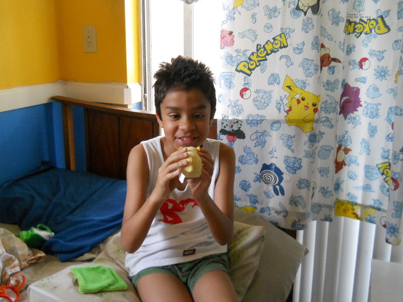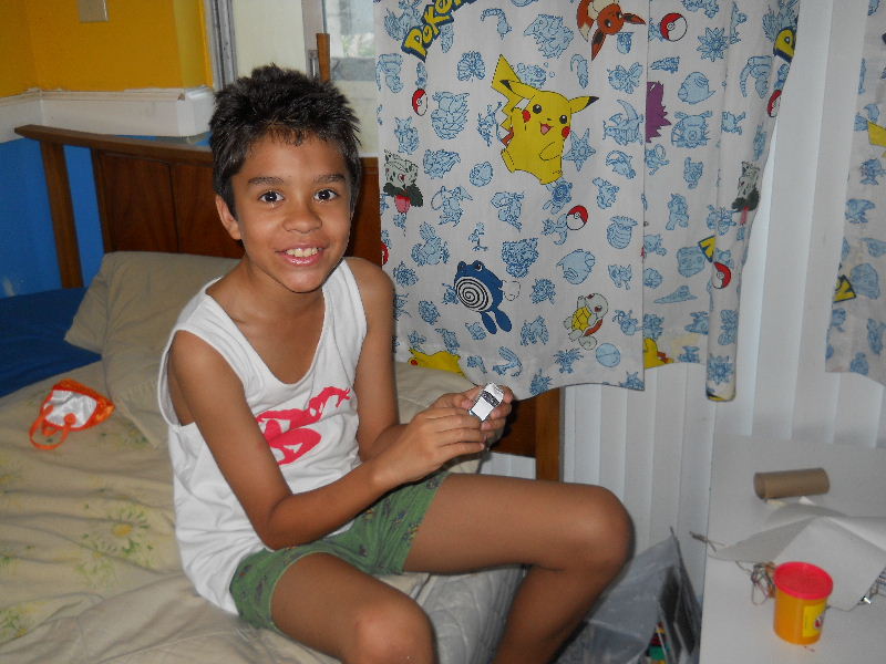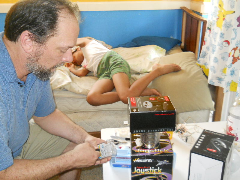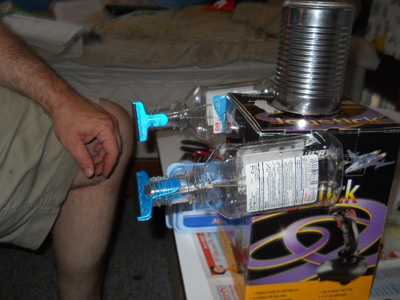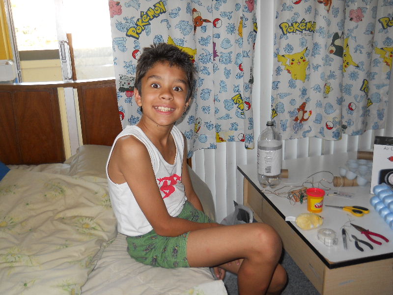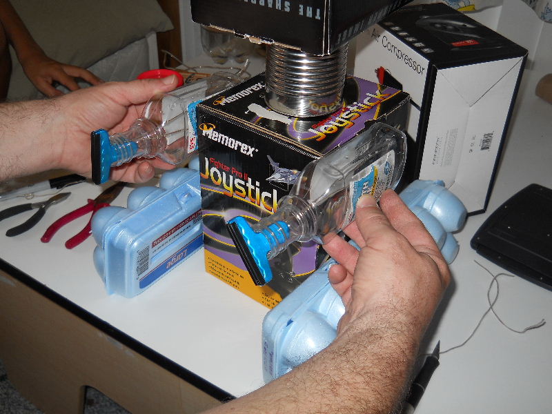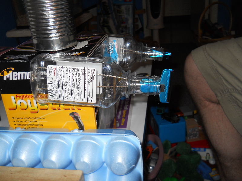 It was a fun project and we had to buy nothing to complete it, not even glue or tape. The wires inside the empty bottles of listerine that made the arms were made out of twist ties from toy boxes. Have fun and be inspired to create your own recycled robot with your little ones!
