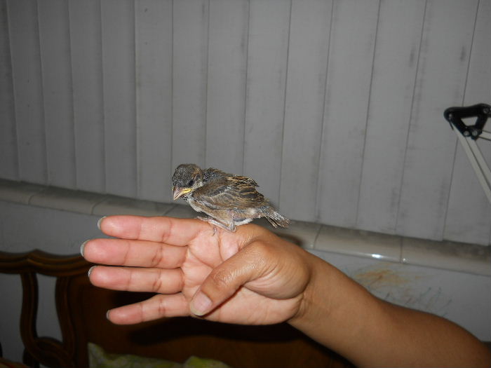 Lavina is prima lejana de Jamie la pajarita mayor que fue rescatada en el mismo estacionamiento detras del complejo de mi oficina. Esta carajita en la foto es familia lejana. Yo se que son de la misma familia porque este tipo de pajaritos no se reproducen muy lejos del nido original. Yo me di cuenta que la bebita esta estaba en el pavimento caida del nido por pura casualidad, yo la agarre y me la traje para la casa para que sea companerita de la otra Jamie.. Have fun looking at baby bird's pictures!