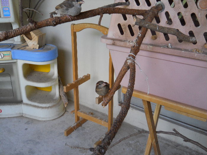 This is her second Friday with us and she is already flying. This is also the second night she sleeps in the enclosed balcony with cousin Jamie. The first night we closed the gate to the carrier but last night I left it open and in the morning she was outside unassisted and perching around with cousin Jamie. Have fun watching Lavina grow up and become friends with Jamie!