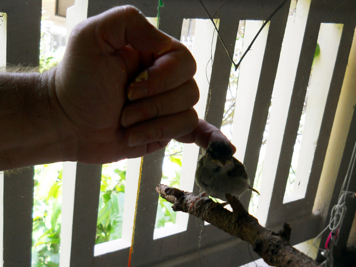 Lavina Sparrow joined the family on a Tuesday, June 12, 2013. I found her laying on the asphalt right under her nest. I was fortunate enough to see her before it was too late.