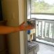 On sunday we had a thunderstom in our area. Lots of wind and rain, Jaymee's balcony got wet with the blinds flapping around messing up the tree branches I had collected for her to perch on. Jaymee was not happy about the wheather so she found rescue inside my parents' bedroom amongst my Mom's stack of books. I secured the balcony blinds and relocated Jaymee's condo but I lost sight of her and I couldn't find her. Luckily, the bird was hiding safely until Jason came into the room. Jaymee didn't want to go back outside so my Jason had to let her perch on his shoulder and Jason and the bird went downstairs together until things calmed down. Below there is the video of Jaymee after things were calm outside. Her tail is wet but because that's what she chose to do. She went feather dipping in the water left over on the balcony floor! Check out the video below. This file is quite large so be patient and wait for it to load up.