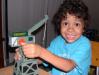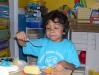 Nicolas talking to a neighbor about his turning 6yrs. old.